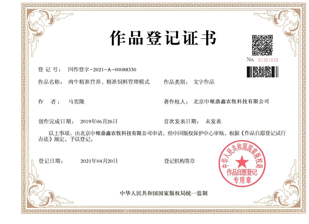 肉牛精準營養(yǎng)版權(quán)登記證書