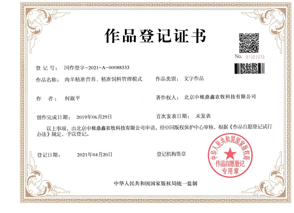 肉羊精準(zhǔn)營(yíng)養(yǎng)版權(quán)登記證書(shū)